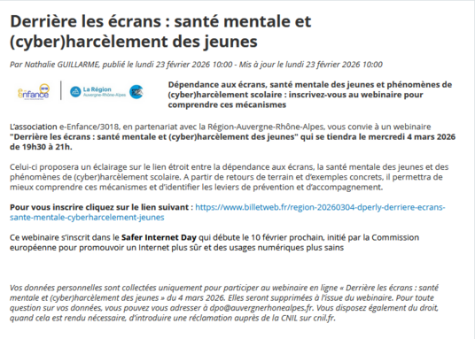 Par Administrateur schweitzer, publié le mardi 24 février 2026 11:22 - Mis à jour le mardi 24 février 2026 11:23sécurité sur les réseaux sociaux, utilisation des données personnelles, addictions aux écrans, cyberharcèlement et santé mentale... -