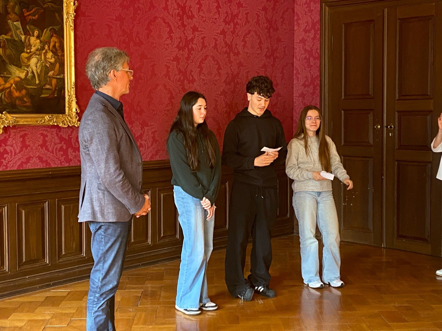 Nous avons également fait une pause au château de Donzdorf, devenu la mairie, où Monsieur le maire M. Stölze, en fonction depuis 32 ans et père d'une des correspondantes, nous as reçus dans le "Roter Saal". Il a expliqué l'histoire de la ville et souligné sa situation stratégique,